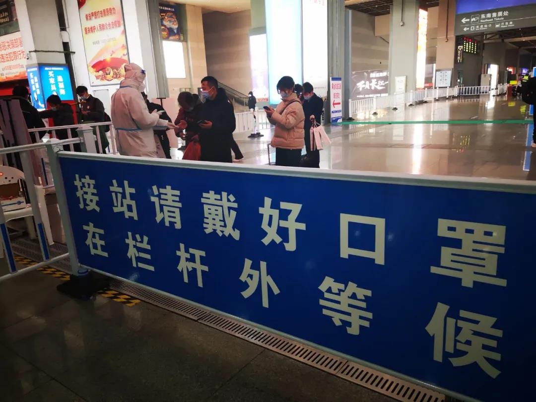 等待旅客全部检测完,记者终于有机会采访到他们。“我俩1月17日过来的,每天早上8点到岗,到下午5点下班,一天基本不喝水,只有中午轮流短暂吃个饭。”陈士铨说。问他工作累不累,这个小伙子毫不在意地说,“不累,还好,就当是寒假实践了,做这件事很有意义。”问他每天面对这么多人,是否有一些害怕,没想到小伙子爽快地说,“不怕,现在全国防疫这么严,我家人都很支持我。”陈士铨家在宣城,学校现在放假封闭了,宿舍住不了,自己一直住在黄宇杰家,“除夕工作完就回家过年。”