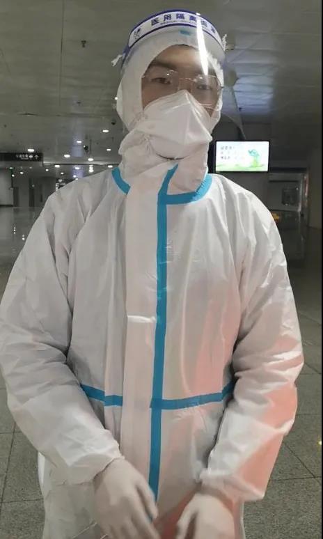 和他搭档的是同班同学黄宇杰,他也从头到脚穿戴着防护服、防护帽和鞋子,在前面做核酸检测旅客的信息录入。遇到年纪大的、不会使用智能手机的,他就帮忙操作或手工录入身份信息。两人配合很默契,一班列车到来长长的队伍很快就缩短了,整个过程顺畅高效。隔壁还有一个核酸检测点,两名检测的女同志相互配合也很默契,全程专注。