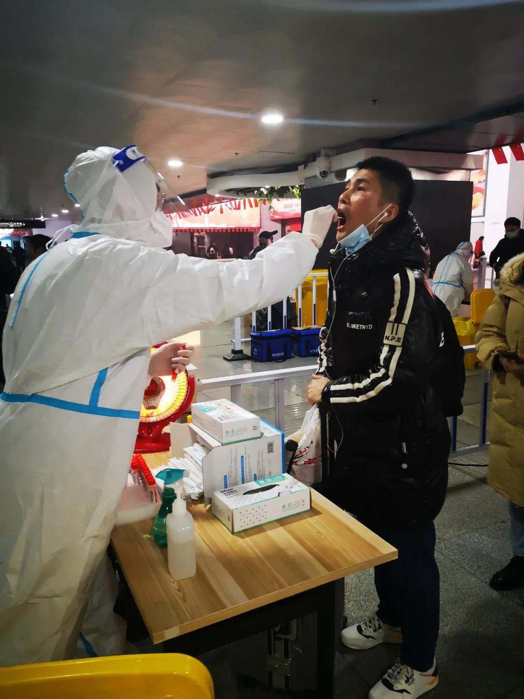 春节进入倒计时,远在外乡的人纷纷踏上回家的归途,却有这样一些人始终在坚守,甚至是“逆行”,他们就是火车站出站口做核酸检测的工作人员,人们不知道他们长什么样,只看到一个个穿着医用防护服的身影,有了他们,回家的旅途更安心。