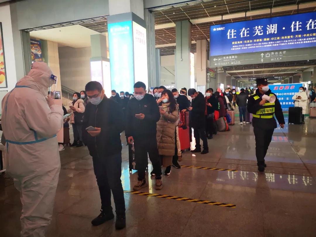 据统计,自春运开始,火车站出站口每天核酸采样检测人数达5000-8000人次。除了火车站,芜湖23个高速出入口自春运以来也都设置了核酸采样点,安排核酸检测人员进行值守。